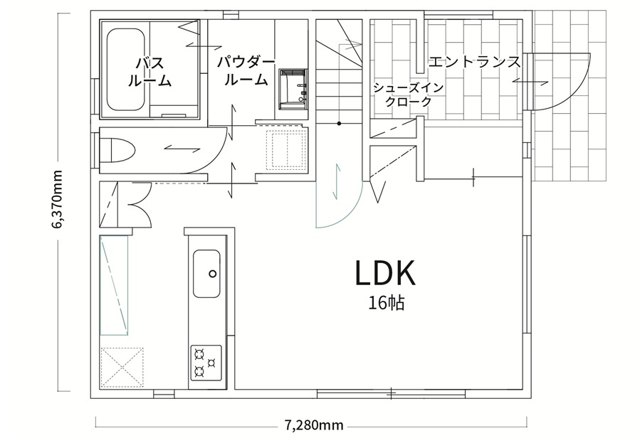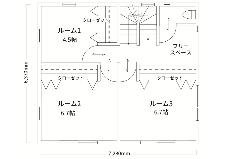 | 建物 基本情報 | 高さ2mの壁に囲まれた屋上はリビングルームとしてプライベート時間を屋外で過ごすことができます。塔屋のスペースを最小限に抑えることで屋外家具の選定も楽しめる十分な広さをもち、食事を楽しんだり家族で映画を見たりできる開放的な空間に。家族の暮らしが1FのLDKから屋上へ展開され様々な居場所を持つことができるプランです。 平面面積(建築面積):46.37 ㎡ |