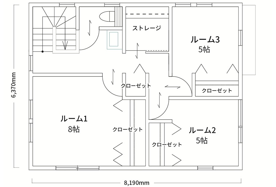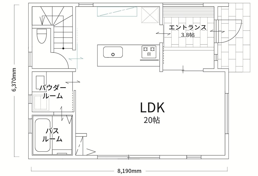 | 建物 基本情報 | Aシリーズの中で最もスタンダードな7×9のサイズをベースに、生活導線を意識したプランの79AⅡ。オーソドックスに使いやすいL型のLDKです。まず入ってすぐの玄関はゆったりとした間口で、キッチン直通の引き戸を開けると、食品の買い出しから帰ってすぐ荷物を運び込めます。14帖のリビング・ダイニングは掃き出しの窓に向かって大きく開けています。カウンター付の対面キッチンが更なる開放感・一体感を。パウダールームはアクセントクロスが新鮮な印象。2階の主寝室にはゆったりとしたクローゼットを備えています。各部屋に十分な収納を確保しながら、使い方自由のフリースペースが空間の使い方の幅を広げます。 平面面積(建築面積):50.93 ㎡ |